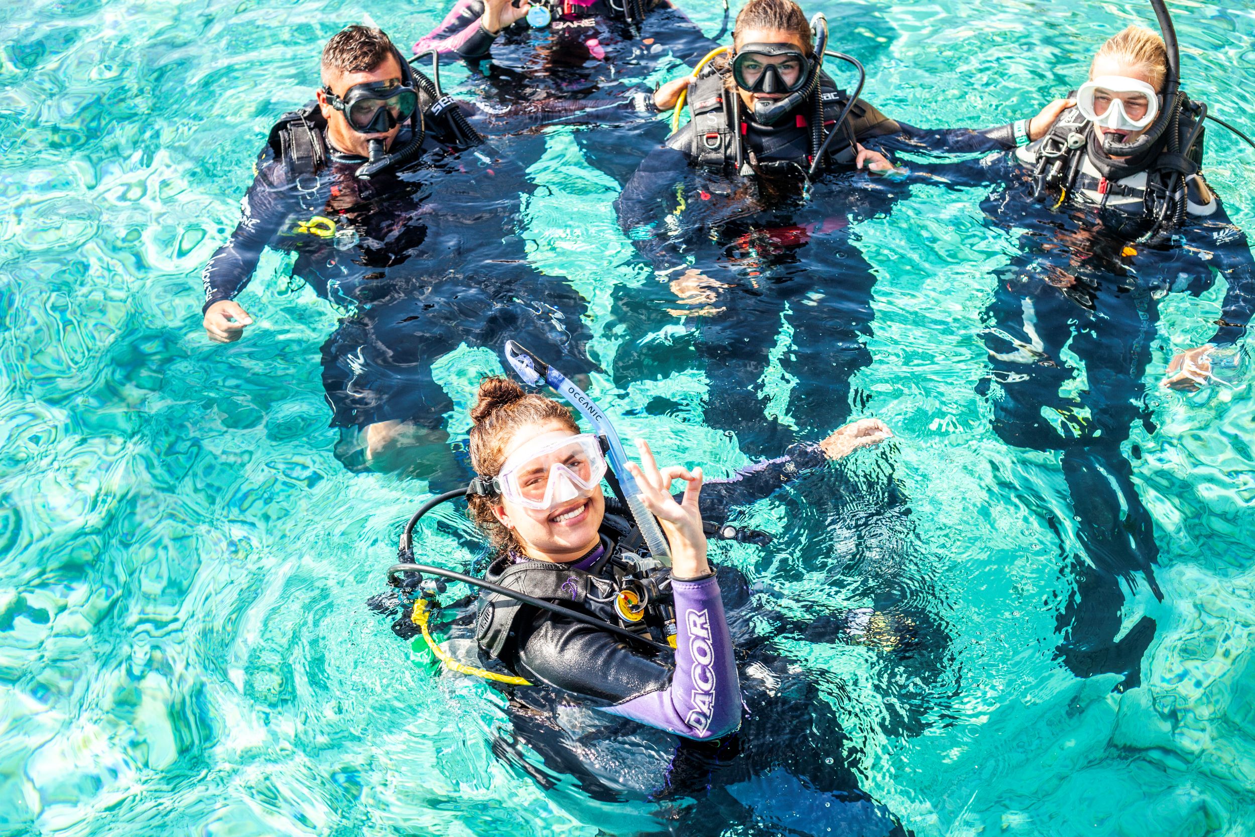 We work as a team and there will be several people involved in the teaching / less than half by the same dive professional